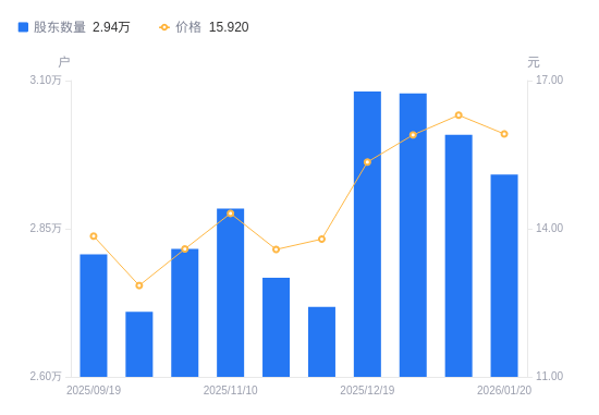近一年(2025年2月10日至2026年1月30日),江苏神通A股股东户数从2.25万户,增加至2.94万户,增幅30.97%,区间股价上涨45.59%。